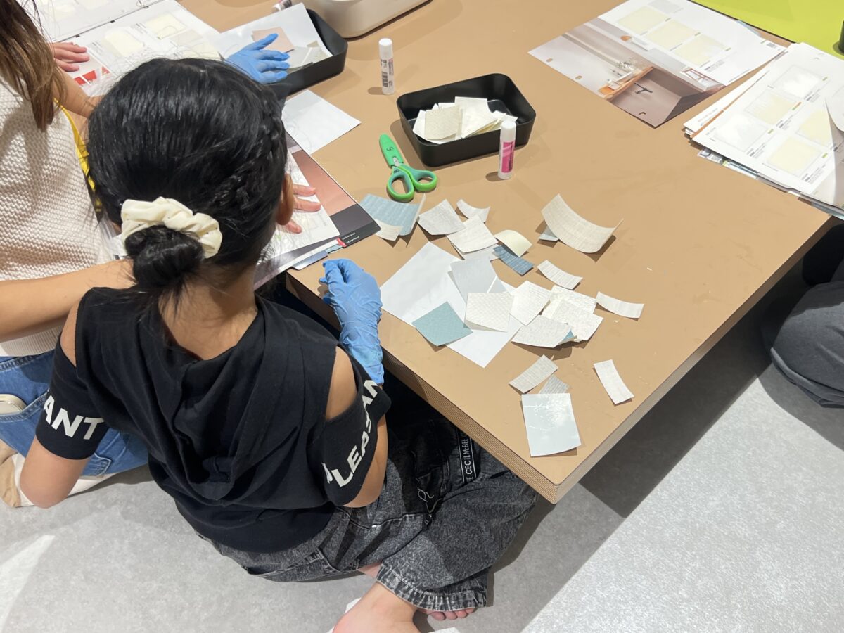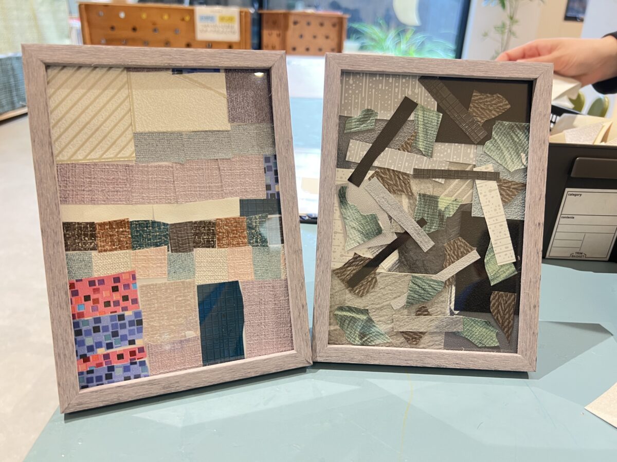 壁紙を取り扱っているサンゲツさんは、クリエイティブラボに端材をたくさん提供いただいています。
