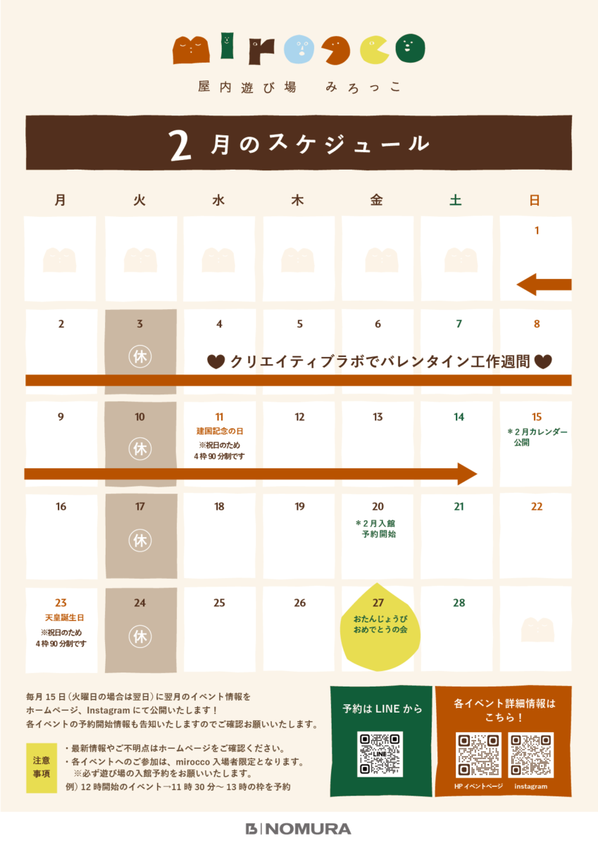 2月の入館予約は1月21日(水)より公式LINEにて受け付けます。