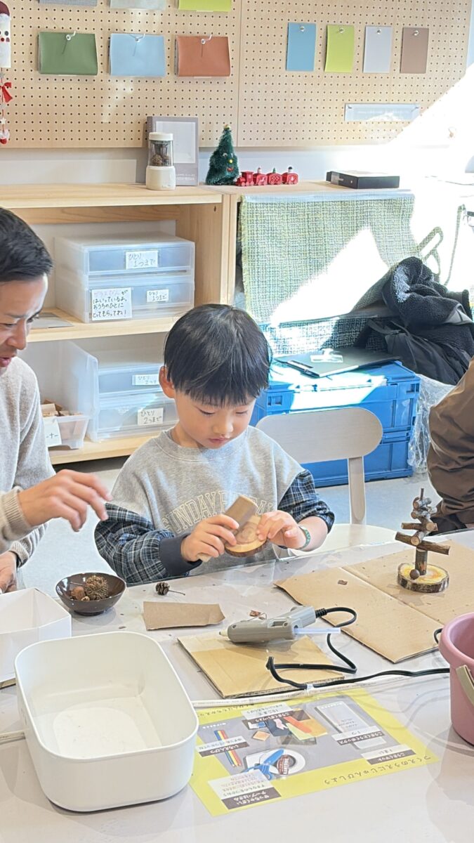 掛川市の源流の森を拠点に活動している「時ノ寿の森クラブ」さんと一緒に、木材を用いてクリスマスツリーとコースターをつくるワークショップを開催しました🌳