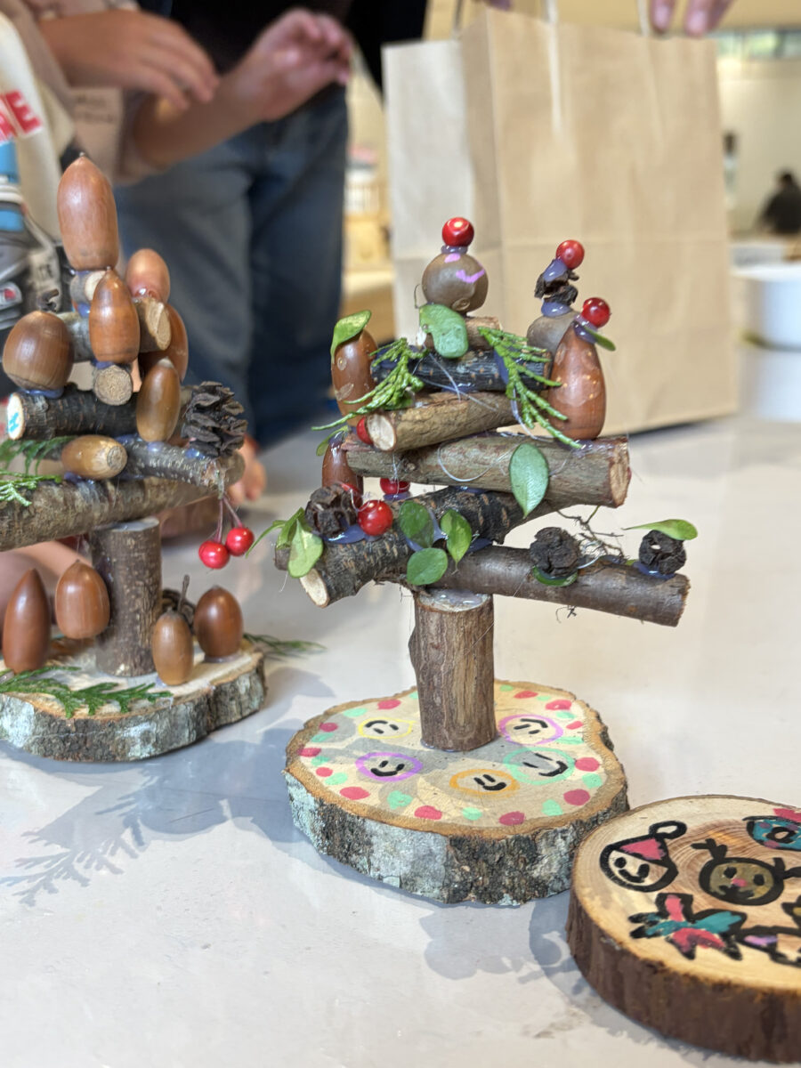 そして、このツリーとコースターに「森の素材」を飾り付け、自分だけの作品をつくりました!