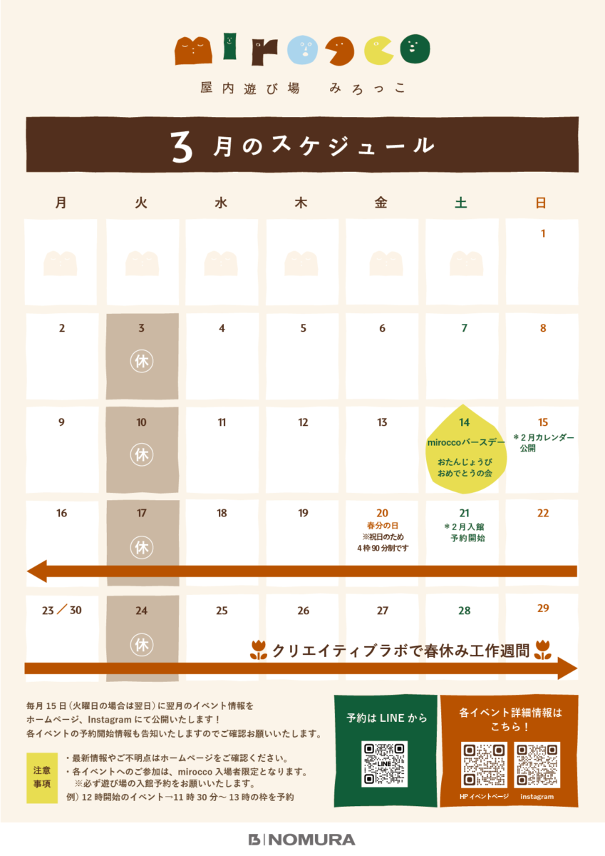 いつも屋内遊び場miroccoをご利用いただきありがとうございます。