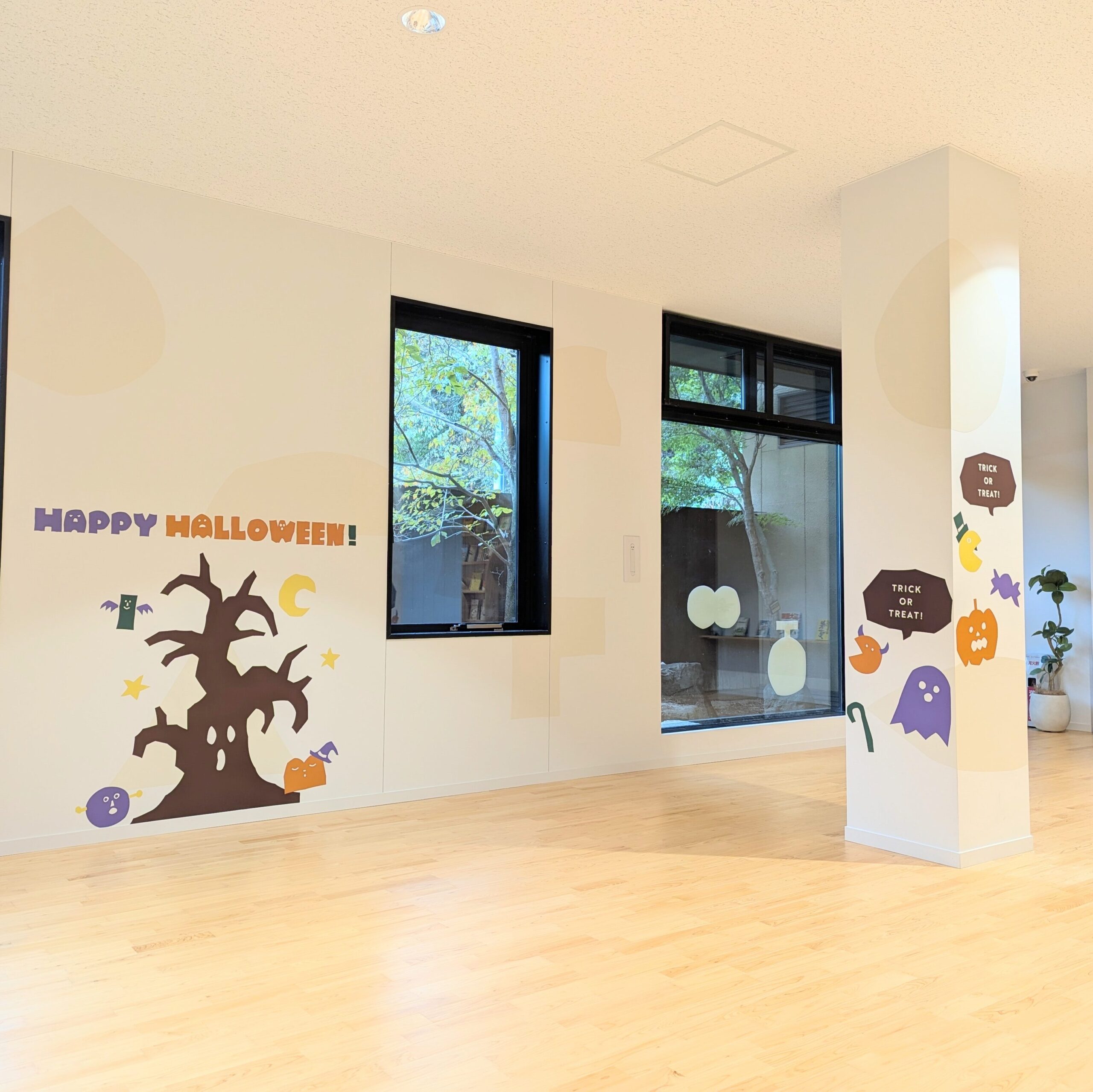 わくわくベースの壁は、お子様が作成したリボンやおばけをぺたぺた貼ってOK。